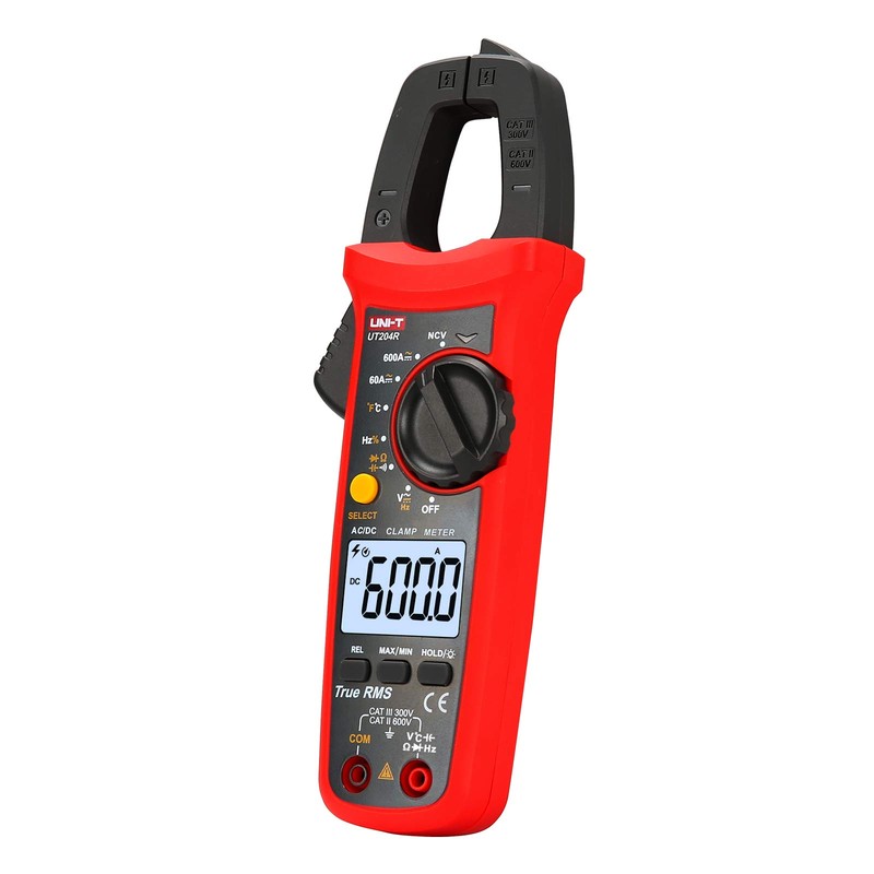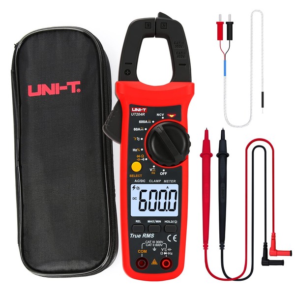 UNI-T UT204R - Medidor digital de abrazadera, rango automático TRMS 6000 abalorio NCV Volt Amp Meter con diodo de ohmios CA/CC, prueba de continuidad de temperatura