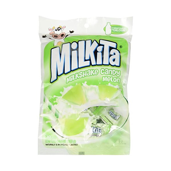 Unican Milkita Melon Milk Candy in 3.2oz (90g) pack. 30 individuallt wrapped
