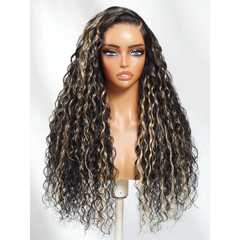 - 【Trendy Two-Tone Color】Rock the stunning Natural Black with Caramel Blonde highlights—a dimensional and stylish color blend that adds depth and movement to your look. The beautiful water wave texture enhances the multi-tonal effect, offering a modern and glamorous style