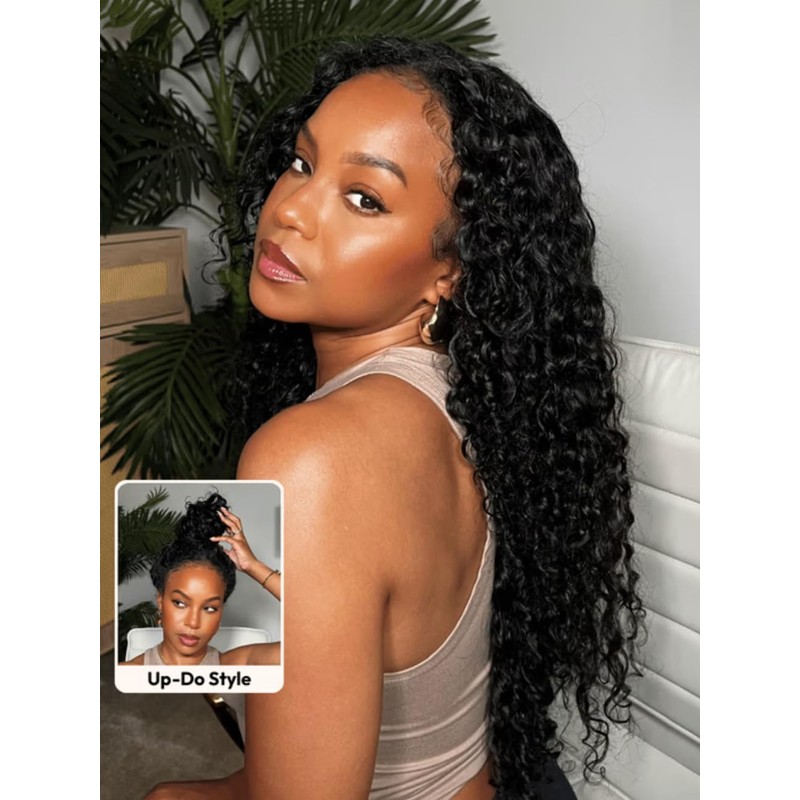 UNICE InvisiBlend V Part Wig Water Wave Mixed Curly Seamless Blending Human Hair Glueless Wig with Drawstring Minimal Leave Out Upgrade U Part Wig Beginner Friendly 150% Density 20 Inch