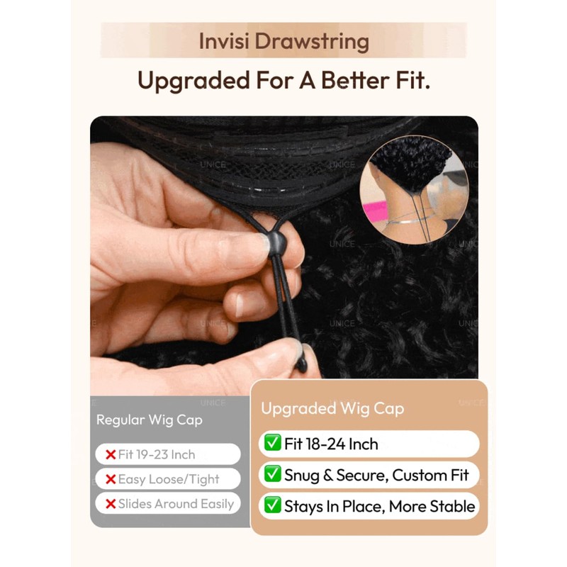 4.UNICE Glueless v part wigs human hair new bulid-in elastic drawstring on the back, 2 clips and 2 combs on the front. no bulk back worries, enhanced more fasten and easier than normal elastic bands.Update cap size (18-24 inch), fits most head sizes.