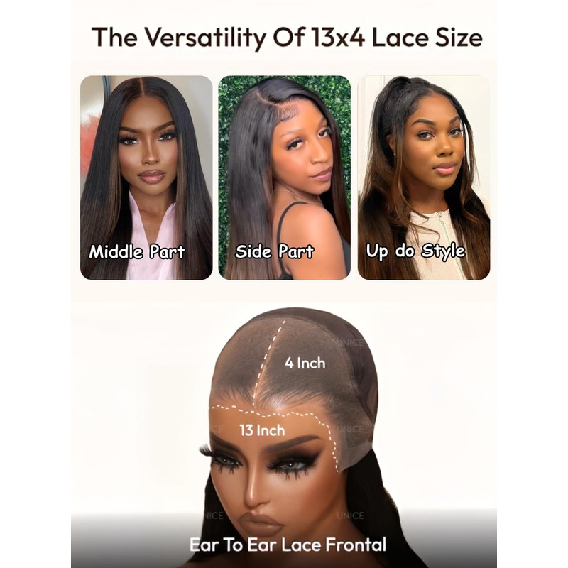 - 2.13x4 Lace Front for Versatile Parting:unice hair glueless 13x4 lace front wigs provides a wide parting space, allowing you to create various hairstyles—middle part, side part, or deep part. This flexibility lets you switch up your look effortlessly, perfect for any occasion.