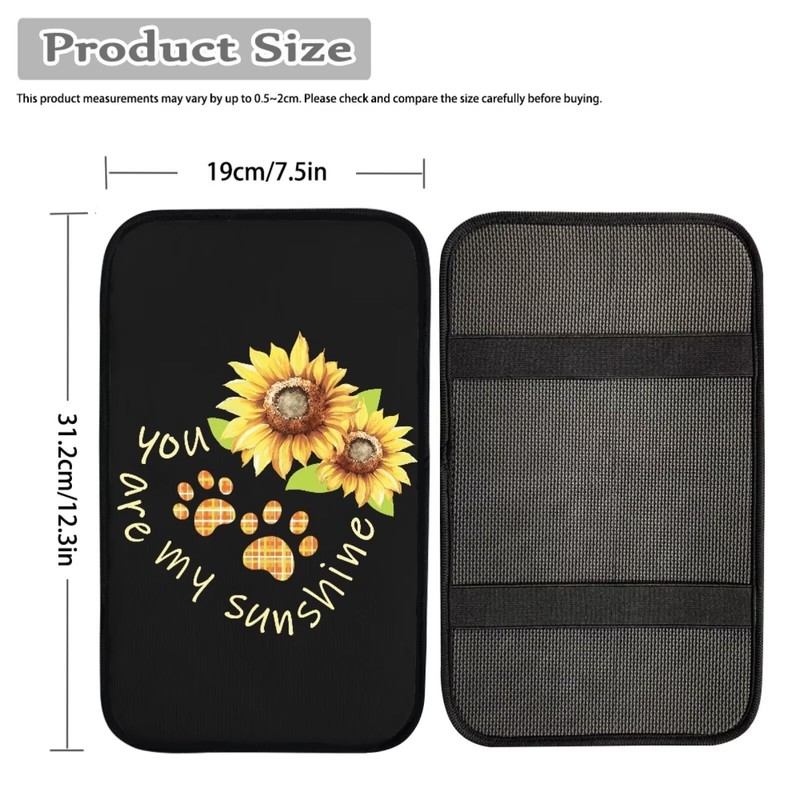 UNICEU Sunflower Dog Paw Car Center Console Cover for Most Vehicle SUV Truck Easy to Install Auto Armrest Seat Storage Box Mat Dust Proof Scratch Proof Auto Interior Set