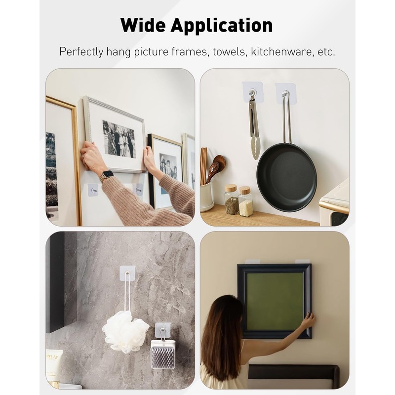 - Wide Application: Instantly transform any room with the 10 sticky hooks! Perfect for hanging picture frames, canvases, mirrors, kitchenware, towels, and more. From bathroom organization to living room decoration, keep your space shipshape effortlessly