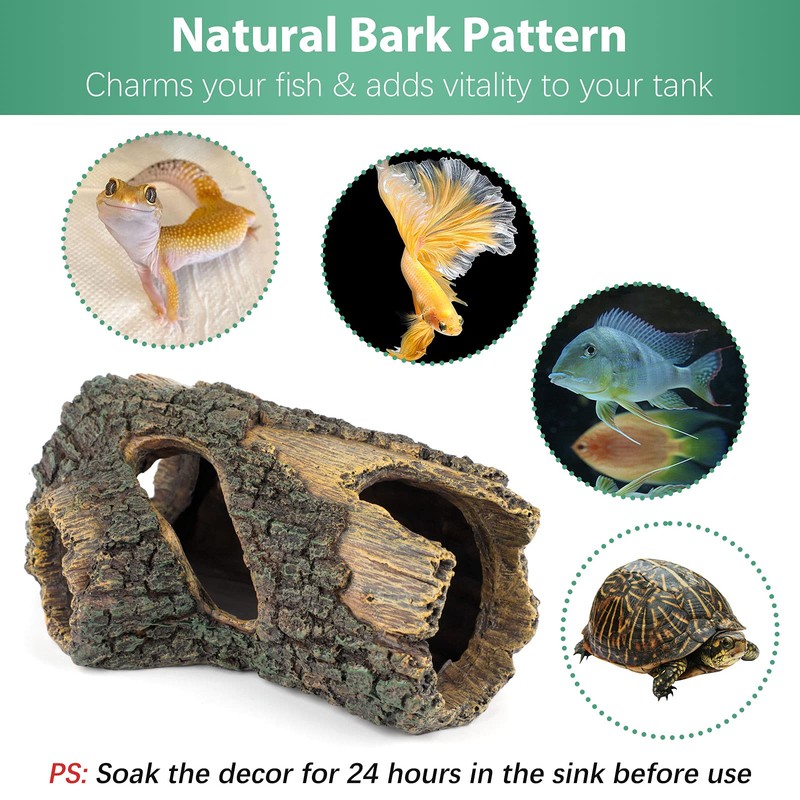 - The natural and detailed resin hollow tree trunk ornament with bark pattern is great for small betta, cichlid, lizards and turtles. Make the tank look realistic and add much fun for the fish.