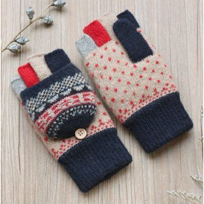 UNICOLD Winter Knitted Fingerless Gloves Thermal Insulation Warm Thickended Wool Convertible Mittens Flap Cover for Wome, Blue