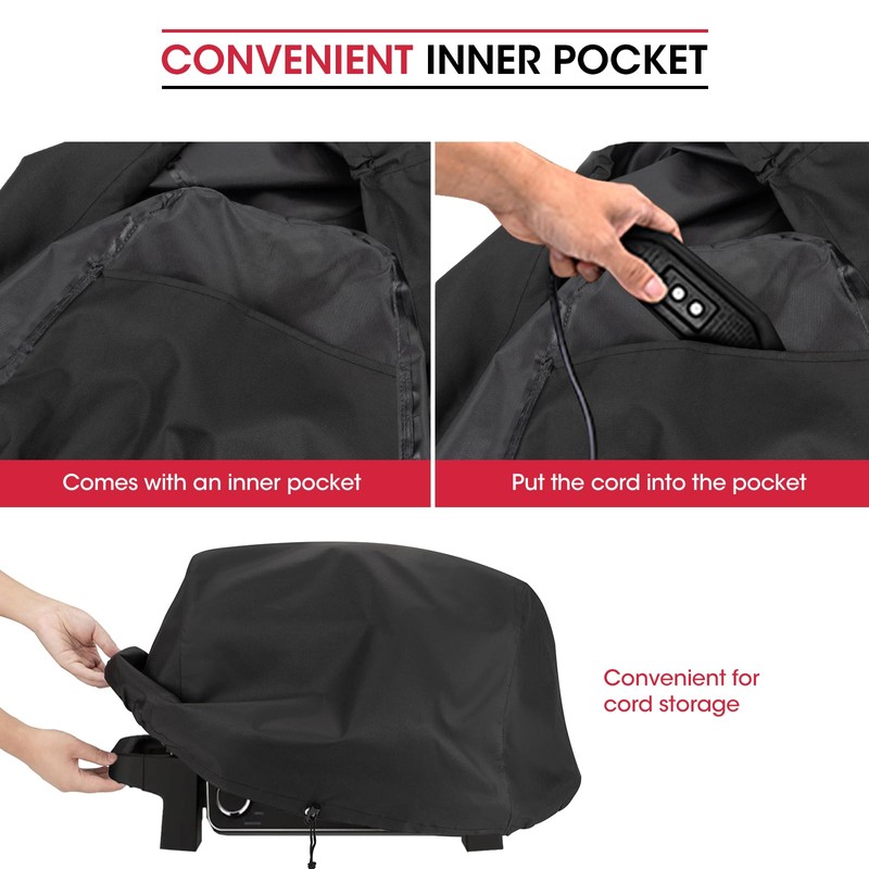 - 【Handy Inner Pocket】Comes with a integrated pocket for electrical cord or other tools, protects the cord inside the smoker cover from contacting rain and dust.