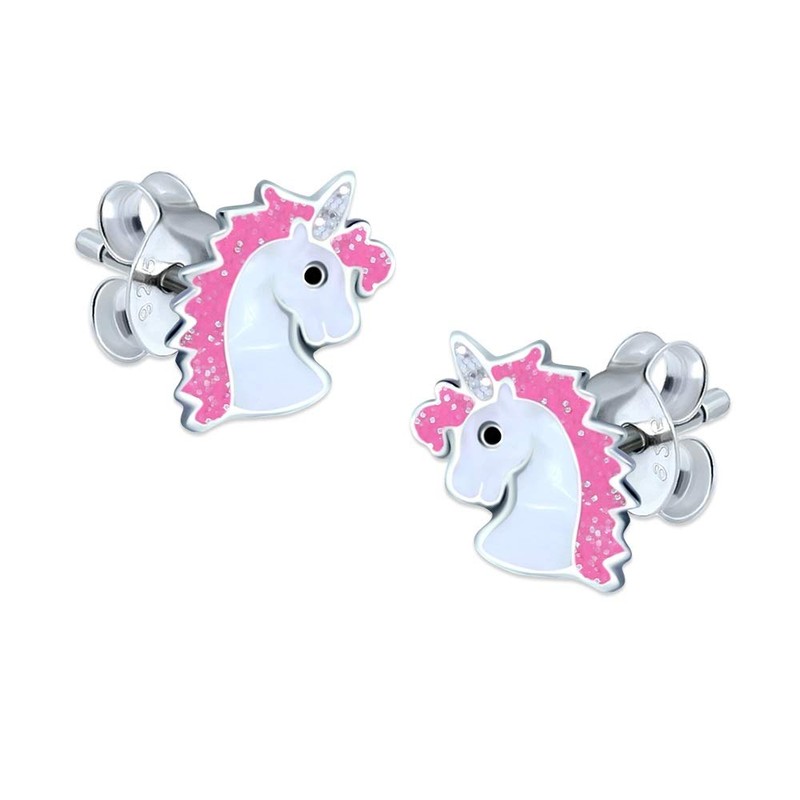 Unicorn Earrings with Sparkly Pink Glitter - 925 Sterling Silver