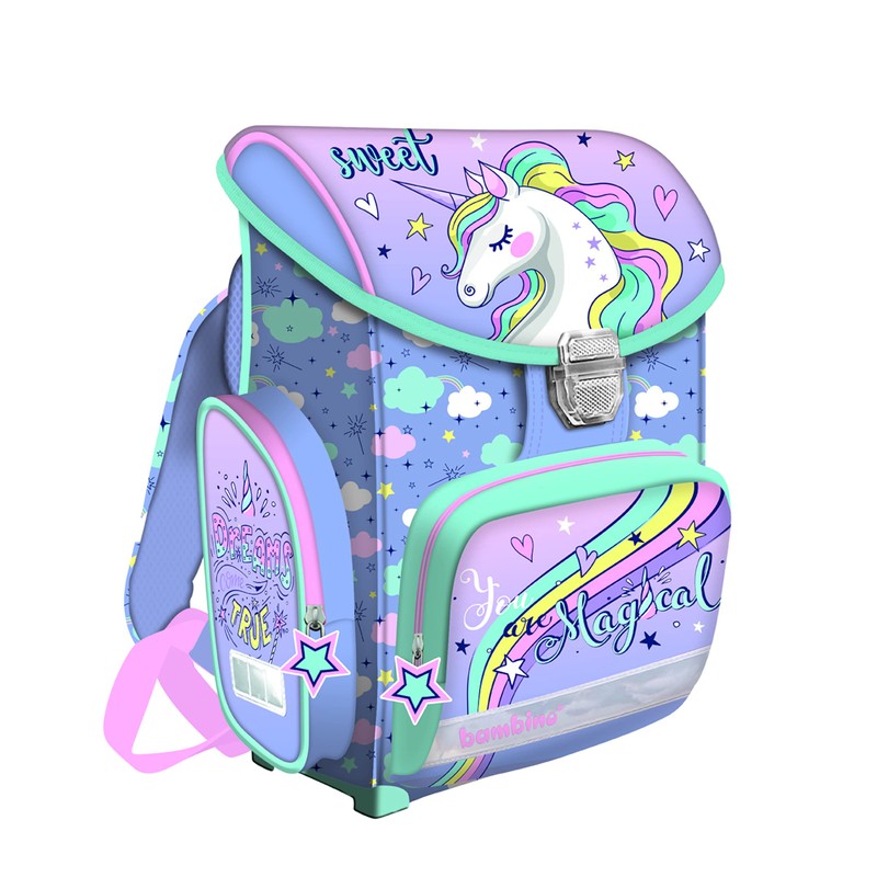 - The school set includes school bag, pencil case, gym bag, sugar bag, water bottle, lunch box, gel pen, diary and rain cover. Suitable from the first grade of primary school
