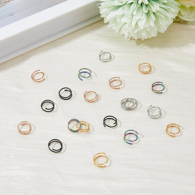 - 10 Pairs:You can get 10 pairs of 304 stainless steel spiral nose ring set earrings in a total of 5 colors, namely gold, black, colored, silver, and brass. These earrings can meet your basic needs.