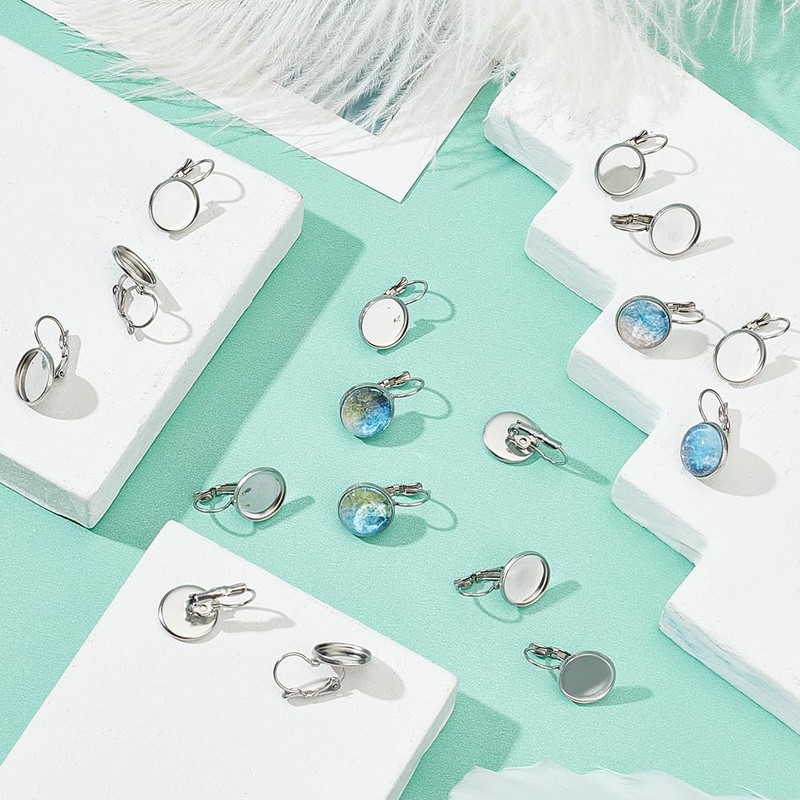 - ♛12mm ROUND CABOCHON SETTINGS: Earring blanks for creating your own beautiful designs. You can add cameo, stones, glass cabochons, acrylic or resin domes, then make your own unique earring hooks