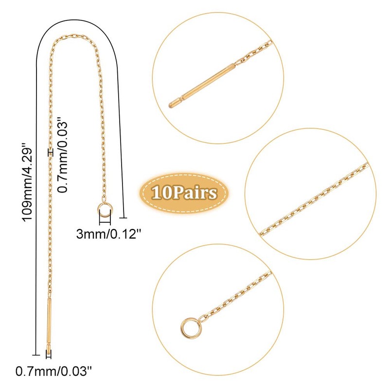 UNICRAFTALE 20pcs Golden Stainless Steel Ear Threads Earrings 109mm Long String Ear Threads with Loops Drop Earring Threader Jewelry Finding for Jewelry Making