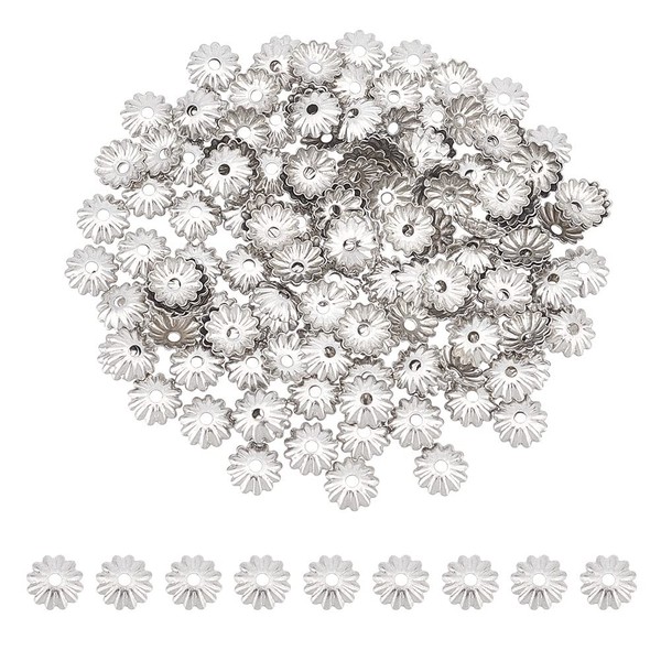 UNICRAFTALE 300個 長さ5.5mm 304ステンレススチール マルチペタルビーズキャップ 中空フラワーコーン メタル フィリグリー ビーズキャップ スペーサー フラワーエンドキャップ イヤリング ブレスレット ネックレス ジュエリー製作 穴 1.2mm