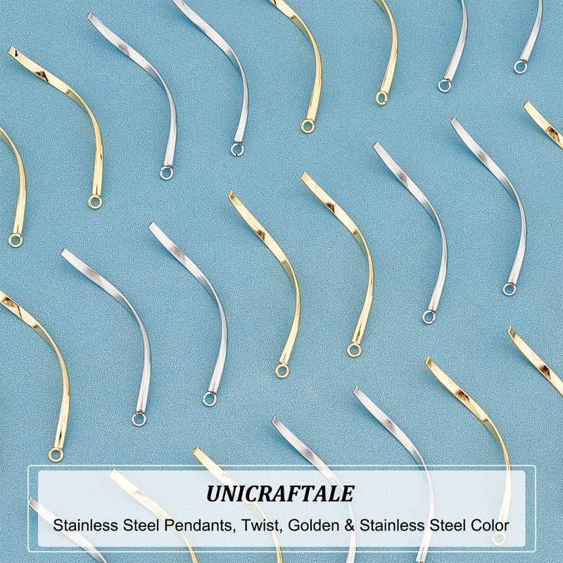 UNICRAFTALE 32pcs 2 Colors Twist Pendants Metal Rectangle Bar Charm Vertical Twist Bar Earrings Charm Stereoscopic Stainless Steel Pendants for DIY Jewelry Making 40 mm