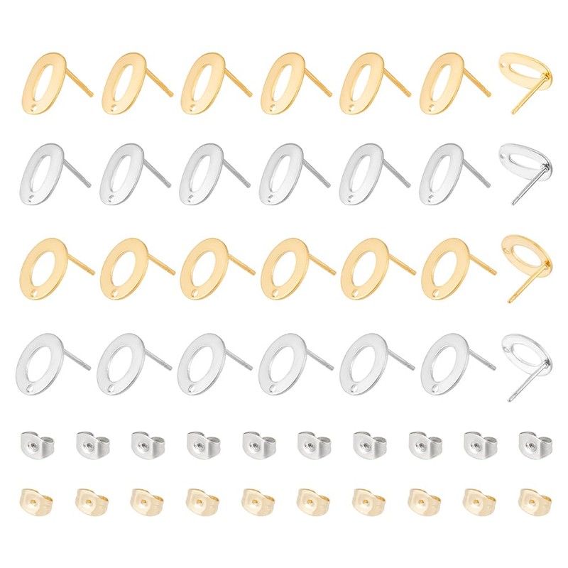 UNICRAFTALE 56 Pieces 2 Colours 2 Styles Stainless Steel Stud Earrings Oval DIY Earring Accessories Hollow Round Stud Earrings with Hole and Earring Clasps Hypoallergenic Stud Earrings for DIY