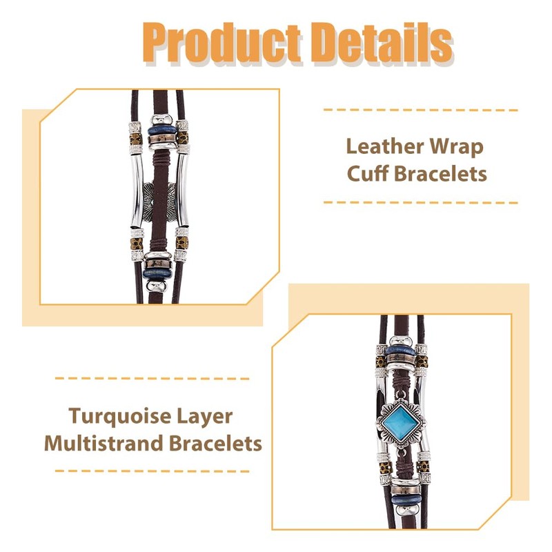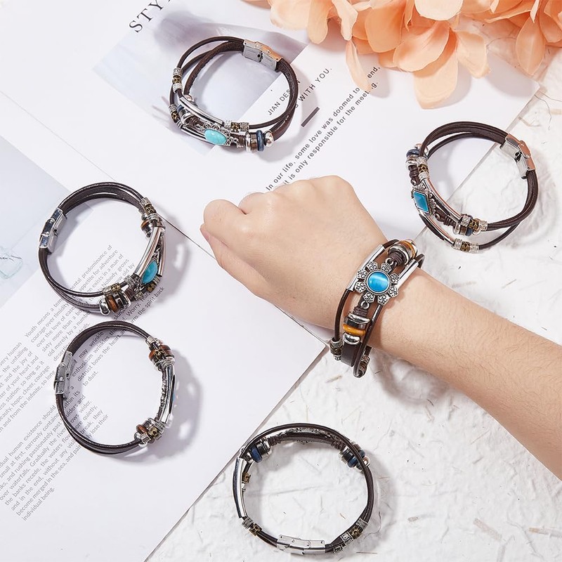 - 6 Style:You can get a set of 6 layer multi strand bracelets with cowhide ropes,all of which have different shapes,including square,sun, and flower.You can choose these bracelets to wear according to your own mood or hobbies.