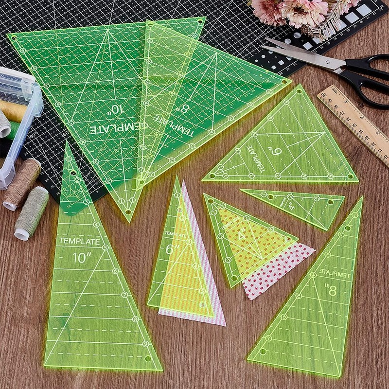 - Packing List: the package includes 8 pcs triangle quilting templates, the bright clear color makes it incredibly easy to see against both dark and light fabrics. This quilting tool can be reused time and time again for endless fabric crafting.