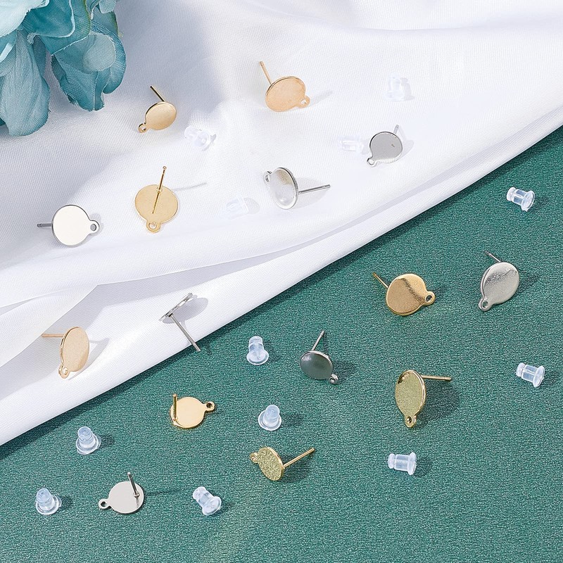 - Flat Round Stud Earring: Earring in 2 sizes,10/13mm,1.2-1.4mm hole,0.7mm pin,each size is about 20pcs, 40pcs in box.