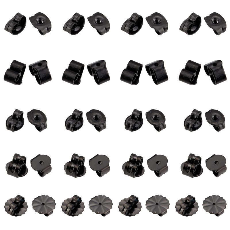 UNICRAFTALE About 50pcs 5 Styles Electrophoresis Black Earring Back Nut Stainless Steel Ear Nuts Earring Clasp Stopper for DIY Jewelry Making 0.8~1.2mm Hole
