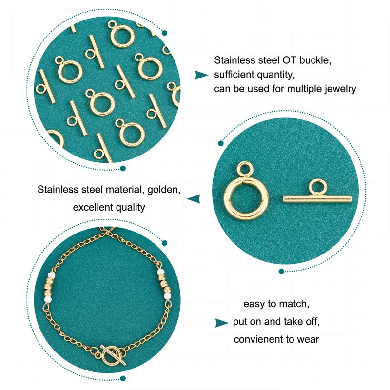 UNICRAFTALE Approximately 20 Pairs Toggle Clasp, OT Clasp, Ring, T-Shaped, O-Shaped, 304 Stainless Steel, Fasteners, Gold, Mantel, Necklace, Clasp, Bracelet Clasp, Bracelet Clasp, Connection Parts, For Bracelets, Accessory Parts, Craft Supplies, Handmade