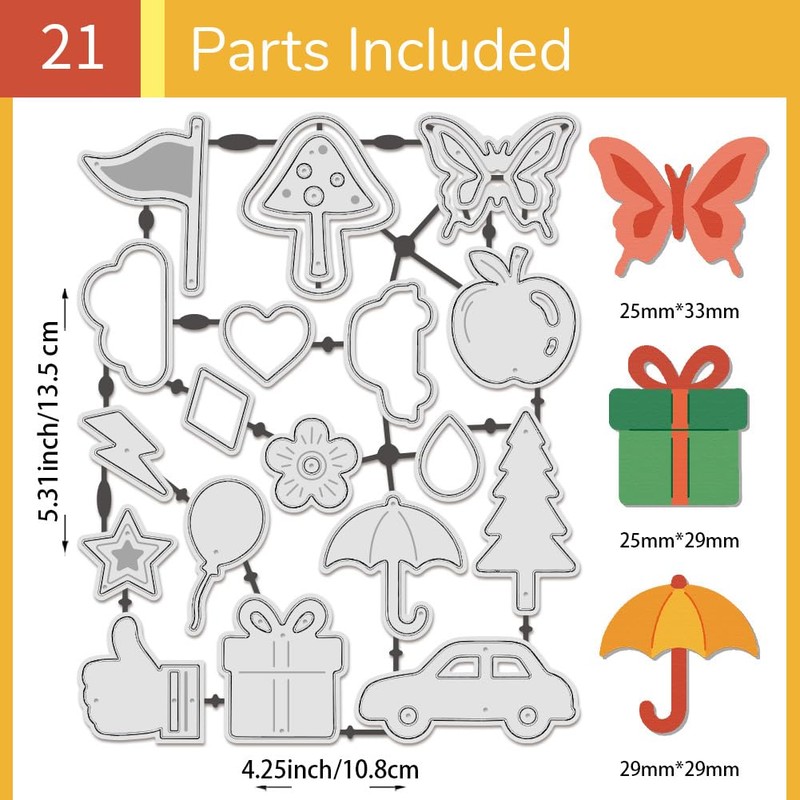 - Sie erhalten:Sie erhalten ein Set mit Schneideformen, die mit niedlichen gemischten Formen gestaltet sind, wie Apfel, Wolken, Regenschirm, Autos, usw. Zart und lieblich, Geeignet für die Herstellung wunderschöner dekorativer Papierarbeiten, Weihnachtskarten und Scrapbooking.