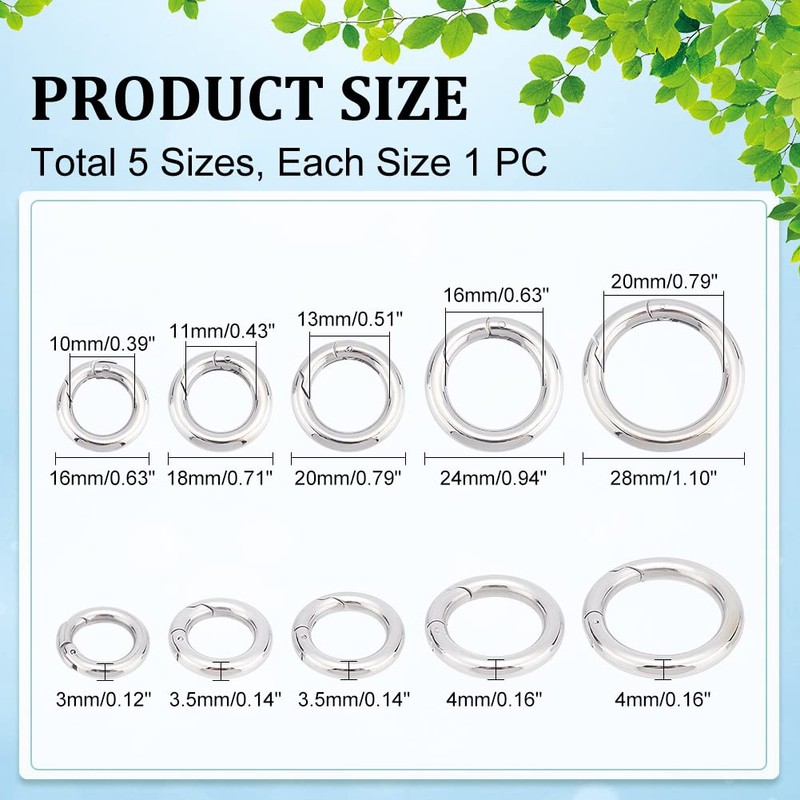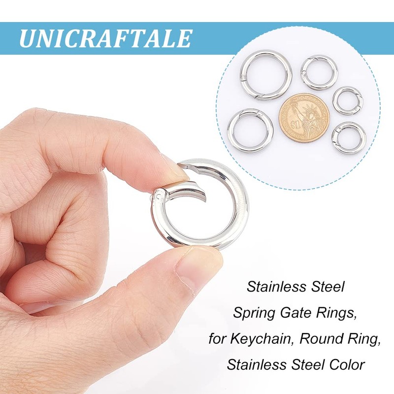 UNICRAFTALE Pack of 5 Carabiner Rings 304 Stainless Steel Snap Clasps 10 ~ 20 mm Inner Round Carabiner Hook Key Ring Spring Gate Rings for Bags Purses Shoulder Strap Key Ring
