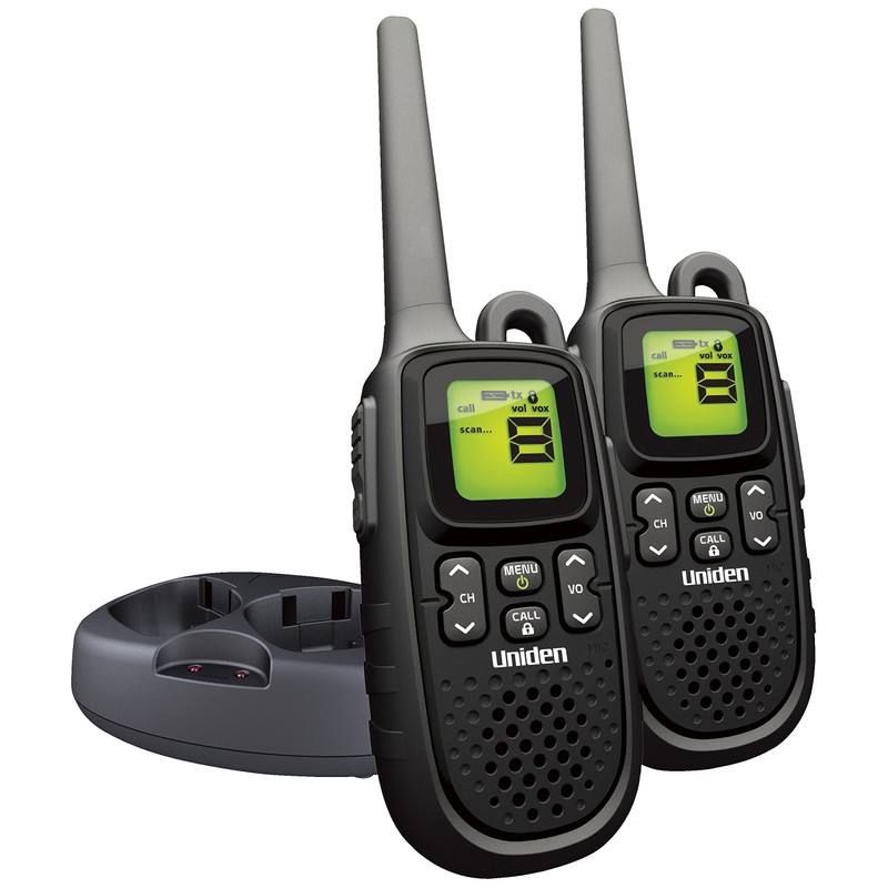 - included components: PMR radio 2 pieces Belt support 2 pieces Battery 2 pieces (700 mAh) User manual Dual desk charger Antenna UK power adapter Rifle grip 2 pieces