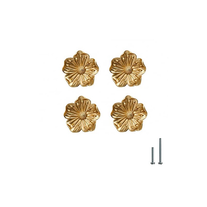 UniDes 4 Pack Gold Knobs for Cabinet and Drawer,Solid Brass Kitchen Hardware,Flower Dsigned Knobs and Pulls
