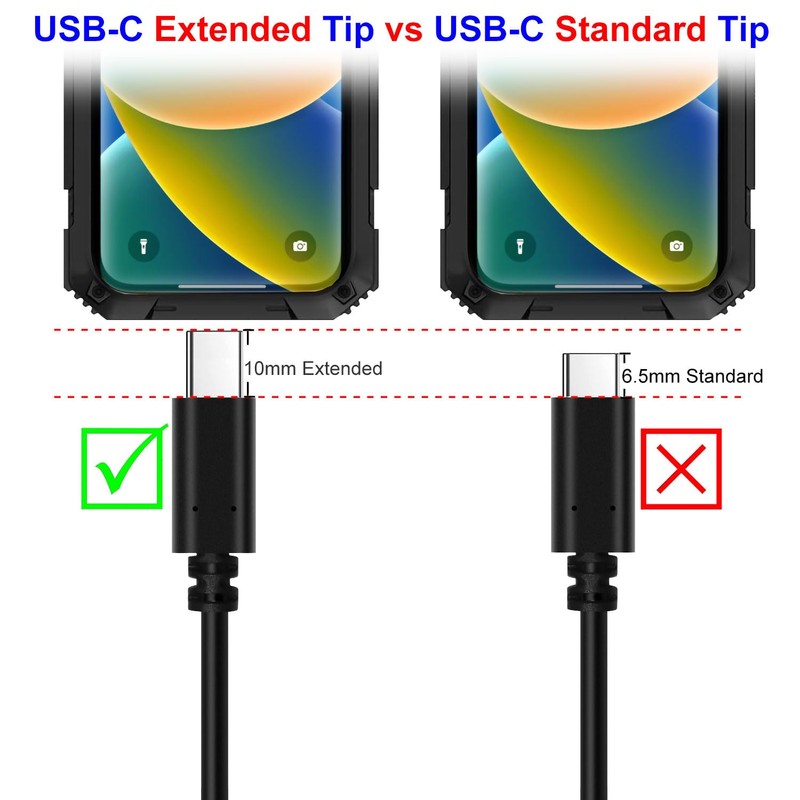 - 1, Conector largo de 10 mm]: el conector tipo C de 10 mm está especializado en teléfonos impermeables IP68/IP69K, teléfonos resistentes al polvo, a los golpes, todos los teléfonos móviles con conector empotrado profundo, etc.