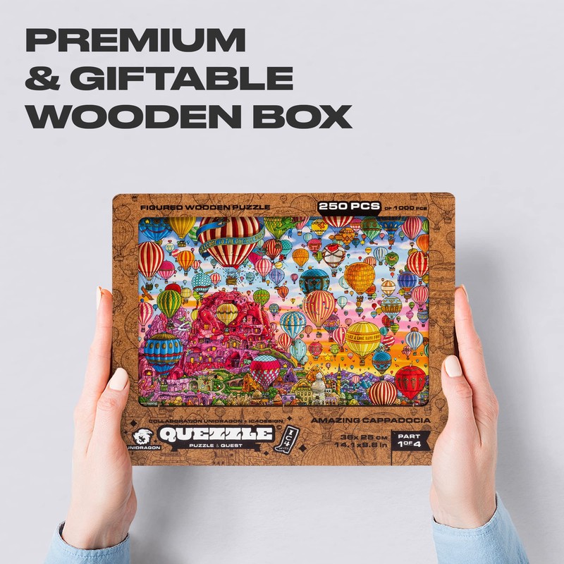 UNIDRAGON Original + IC4 Design Wooden Puzzle Jigsaw, Puzzle Board Game, Quezzle Amazing Cappadocia, Part 1, 250 Pieces, 14.1 by 9.8 Inches…