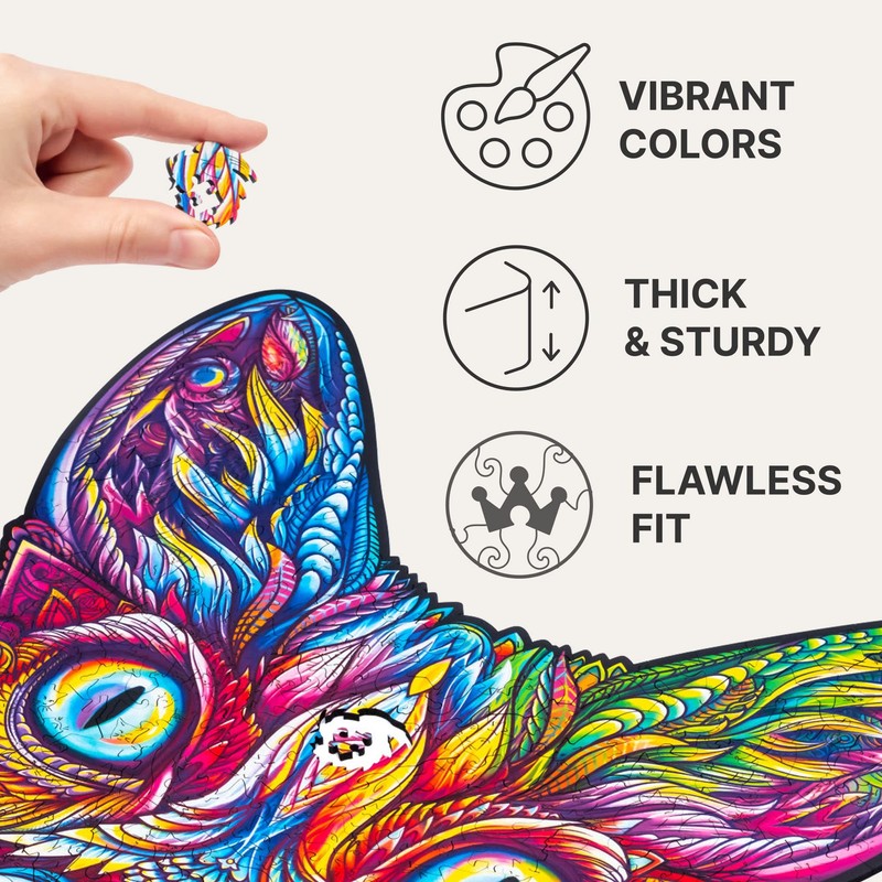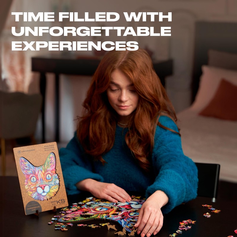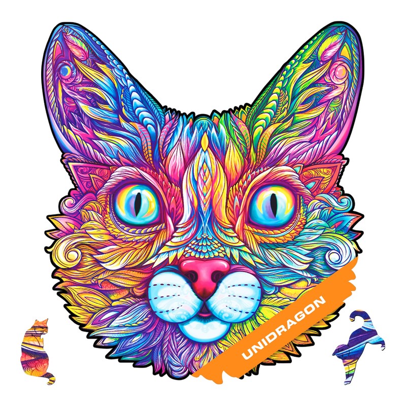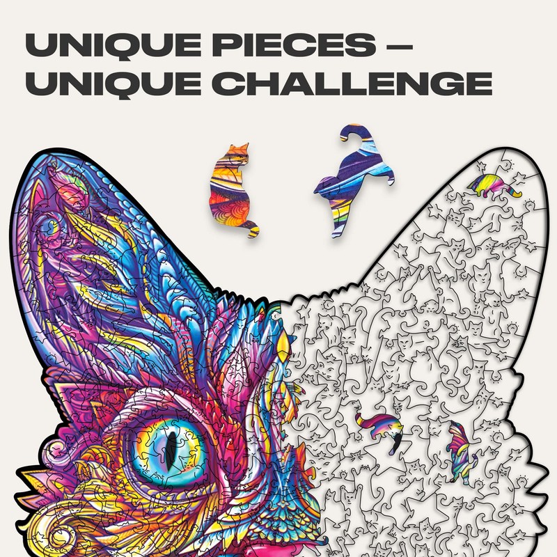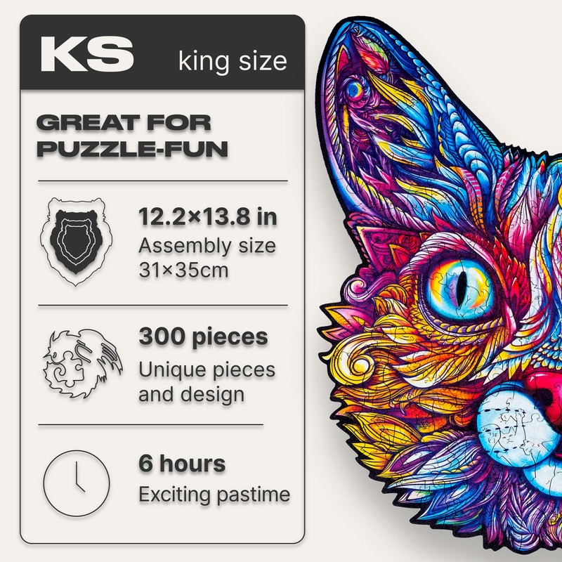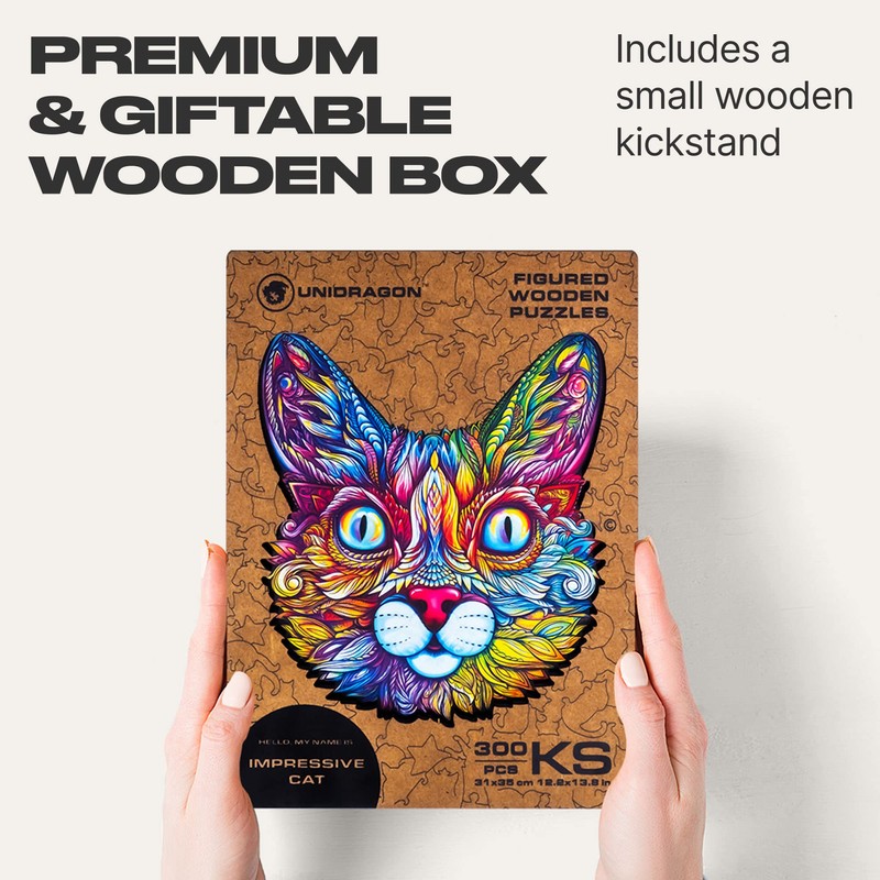 UNIDRAGON Original Wooden Jigsaw Puzzles - Impressive Cat, 300 pcs, King Size 12.2"x13.8", Beautiful Gift Package, Unique Shape Best Gift for Adults and Kids