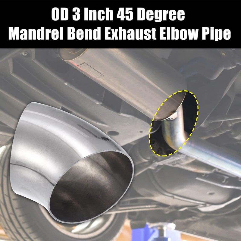 Unifizz 1pc OD 3" 45 Degree Mandrel Bend Elbow SS304 Stainless Steel Bend Tube Exhaust Elbow Pipe Compatible with Car Modified Exhaust System 3 Piping Silver Tone