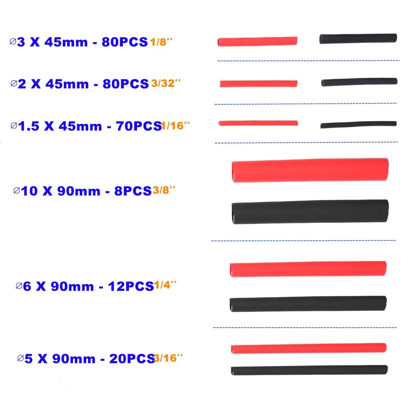 - 【GLUE INSIDE】When the heat shrink tube shrinks, the glue on the inner wall will melt, and then it will tightly adsorbed on the surface of the object, so that the connection is tight and the insulation is perfect. It is waterproof, heat resistant, anti-slip, anti-aging and corrosion resistant.