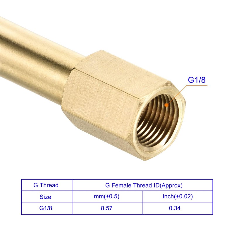 - 【Size】Color: Gold; Fitting Shape: Straight;Thread Size: G1/8 Female to G1/8 Male;Tube Length: 75mm/2.95inch.