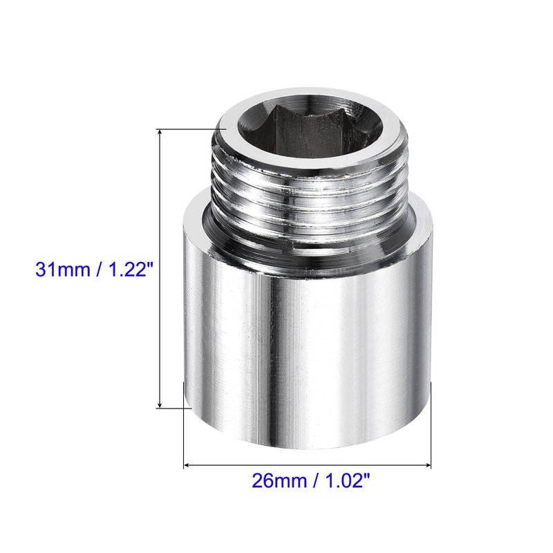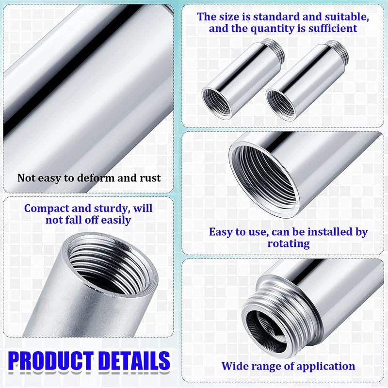 - 【Size】Color: Silver; Fitting Shape: Straight;Thread Size: G1/2 Female to G1/2 Male;Extended Part Length: 20mm/0.79inch.