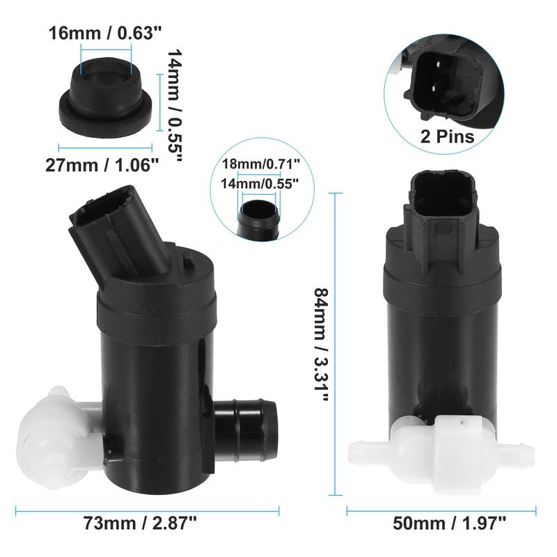 - Installation: Easy to install, to replace your old or broken windshield washer pump.