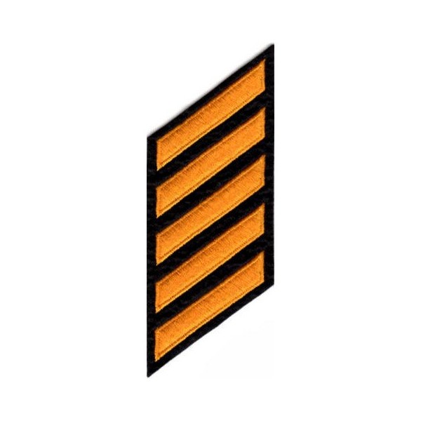 Embroidered fabric service hashes. One color Dark Gold Stripe on Black Felt Backing. 2-inches wide x 3/8-inches (per stripe).