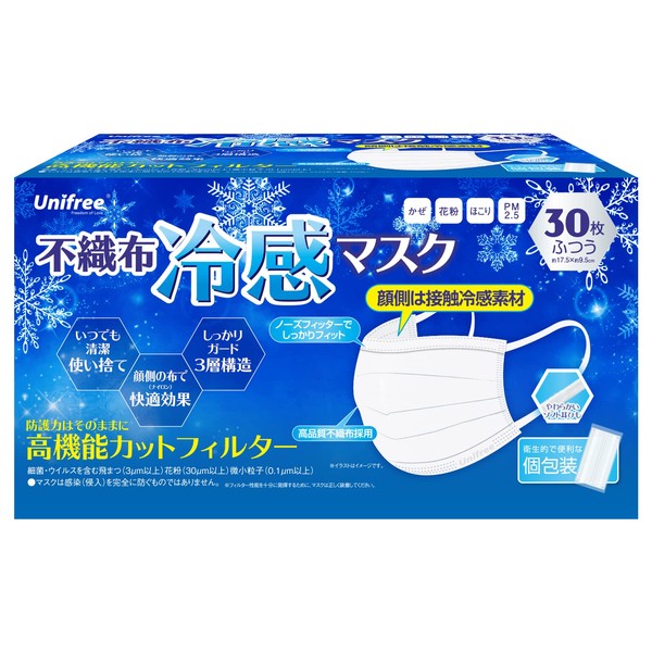 UNIFREE Non-woven Cooling Mask, Pack of 30, Cool Sensation Mask, Uni-Free (Regular (30 Pieces)