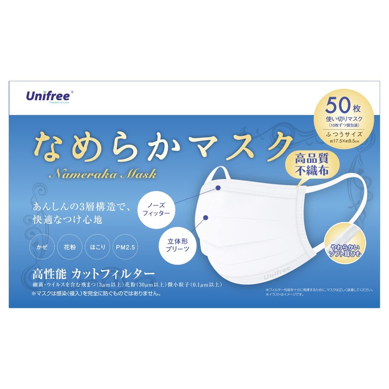 Unifree Smooth Mask, 50 Pieces, Non-woven Mask, Unifree (Regular Size, 50 Sheets))