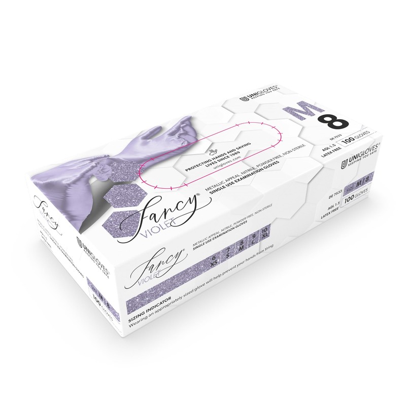 UNIGLOVES FANCY VIOLET Nitrile Disposable Gloves, Multipurpose, Powder Free and Latex Free Disposable Gloves, Box of 100 Gloves, Violet, Size XS