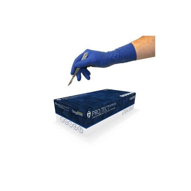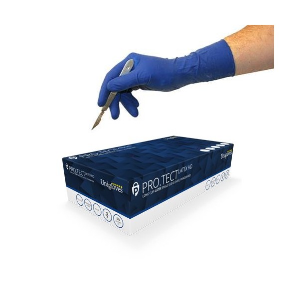 Unigloves ProTect Disposable Long Cuff Blue Latex Powder Free Gloves (Medium)