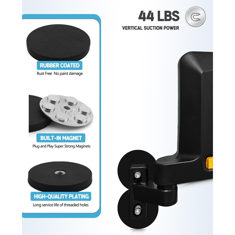 - Package - Set of 2 mirrors (Passenger and Driver Side) High impact ABS housing with HD convex glass, includes 4 magnetic mounting base & Hardware to attaches wherever you have a metal surface that is flat
