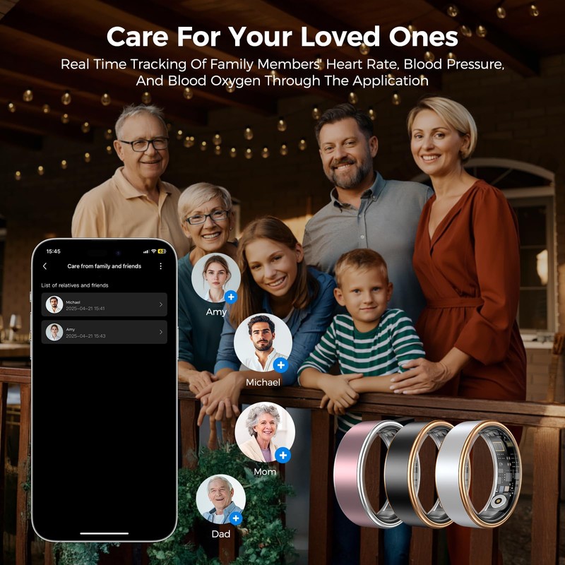 - Extra Smart Features – Remote Camera + Health Sharing: Use the Oucscru Smart Ring as a remote control for your phone camera—great for capturing group shots or selfies. With Friend Care Mode, you can securely share your health data with loved ones, making it an ideal feature for families and couples.