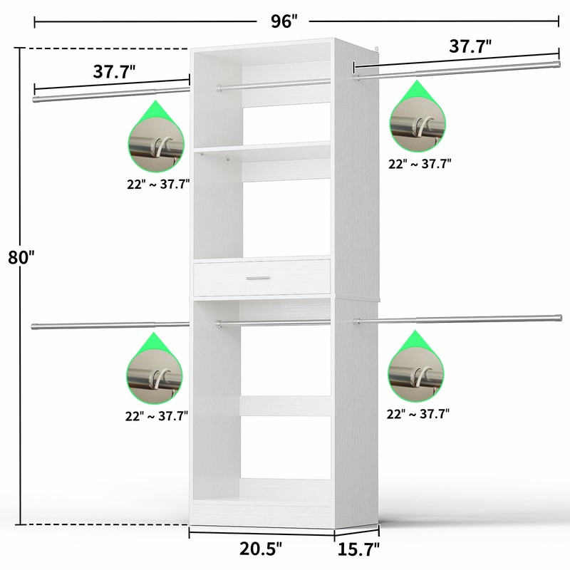 Dimension (Closet System ): 96" W x 16" D x 80" H;