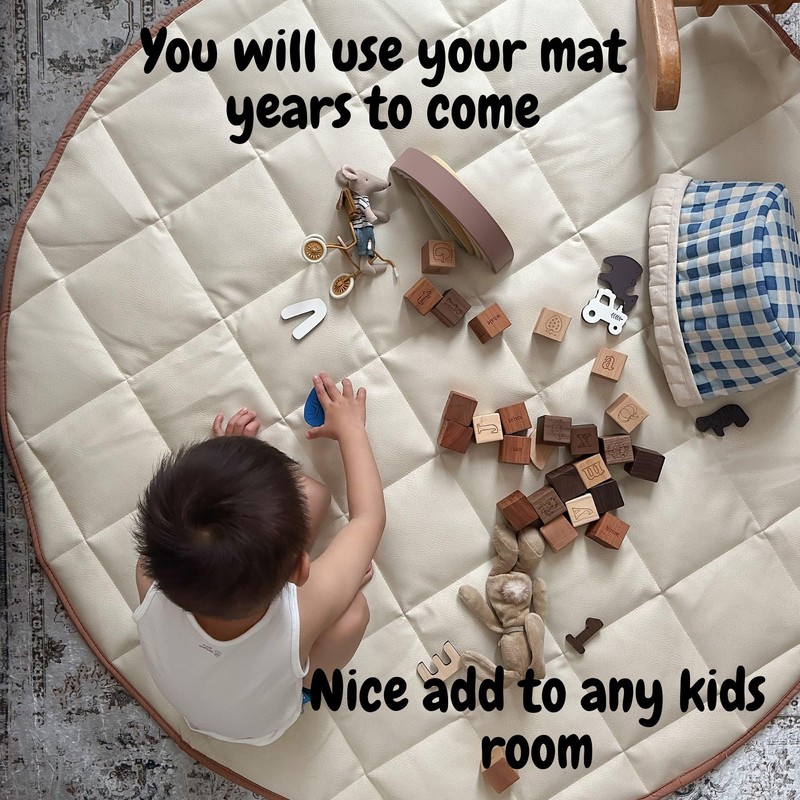 - Uniklook Round play mat | like any other mat- bring the luxury of leather to your home, nursery or play room with our premium padded Large 47”-120cm round quilted 100% vegan leather play mat.