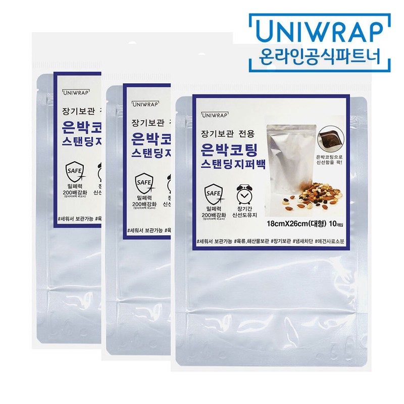 Unilab Silver Foil Coated Standing Zipper Bag (10 sheets x 3 pieces) / 유니랩 은박코팅 스탠딩지퍼백(대10매 x 3P)