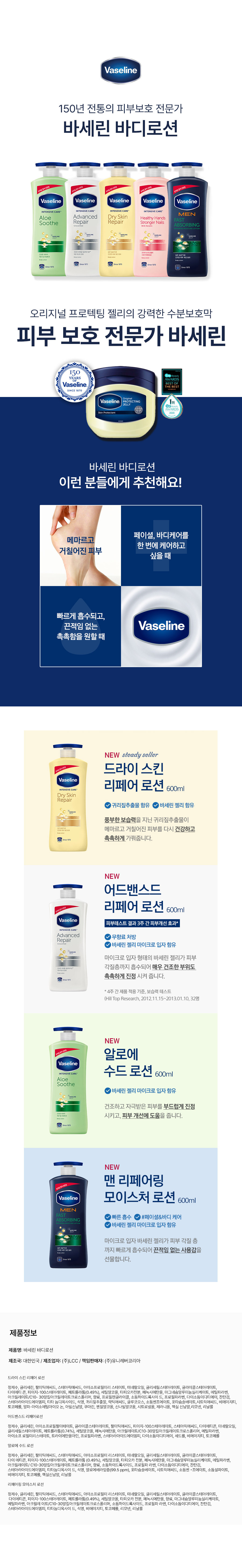유니레버 바세린 알로에 수드 바디로션 600ml