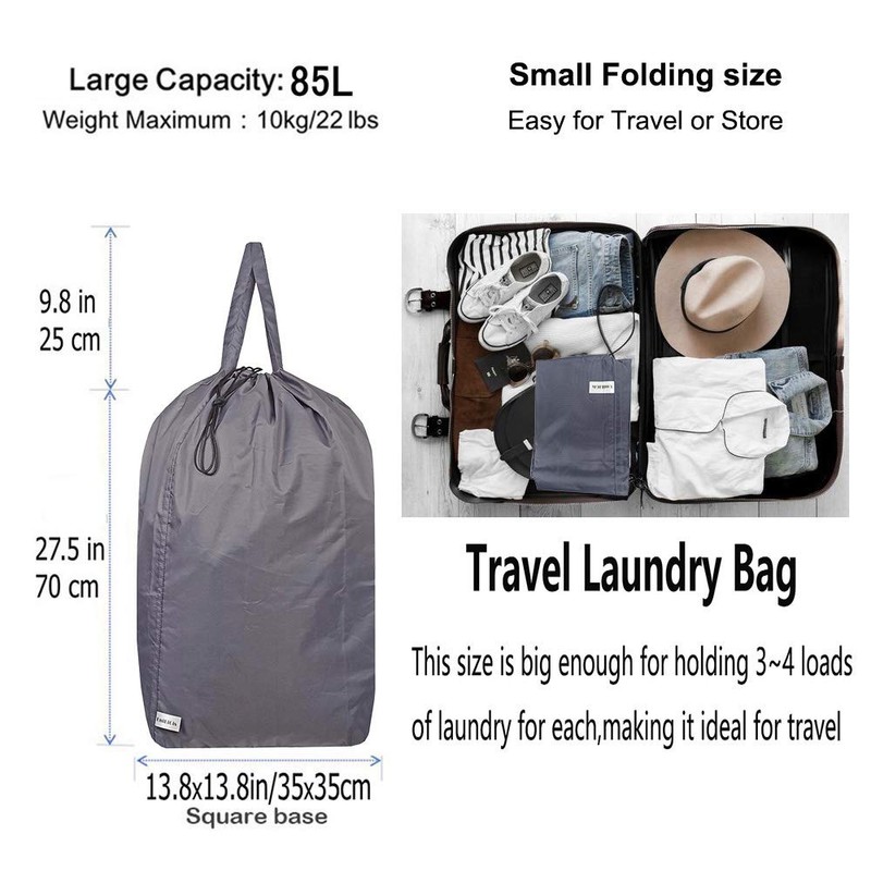 - Large Capacity- large laundry bags 85L capacity with durable thick nylon material, never worry too much clothes would tear the bag apart. Liner size: 13.8x13.8x27.56H in.