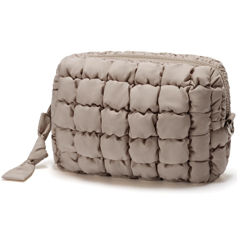 Unilily Puffy Cosmetic Bag for Women, Stone, Medium, Quilted Pattern Puffer Makeup Bag