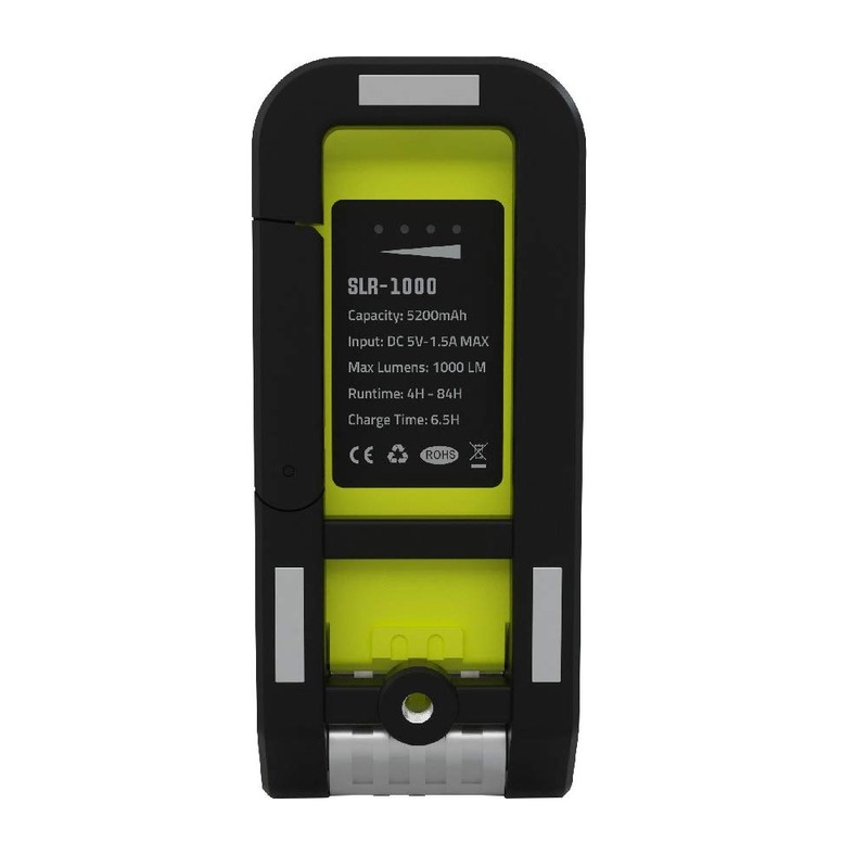 - The SLR-1000 is a folding portable worklight that has a 1000 Lumen output via COB LED. In addition it has a 300 Lumen LED flashlight in its head for spot work. Powering it is a 5200mAh Li-ion battery which can be charged via micro-USB when required. For placement it has a 180° adjustable magnetic stand which features an additional hook.